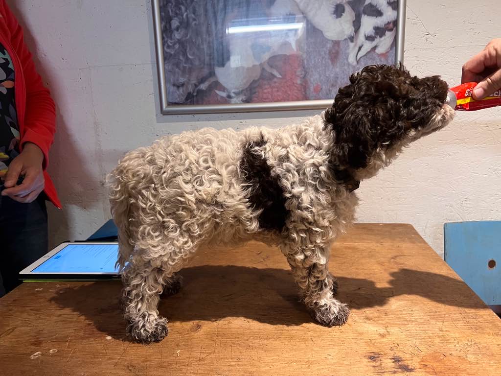 Farbe: Roano-Marrone, Fell-Typ: Gelockt, Fell-Muster: Normal