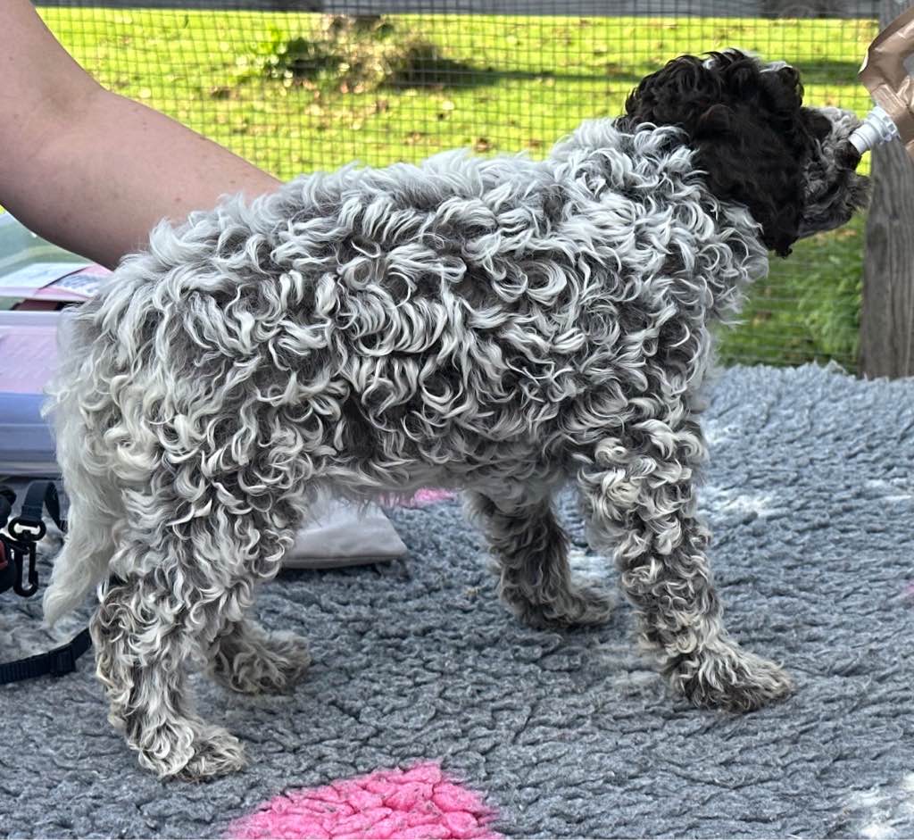 Farbe: Roano-Marrone, Fell-Typ: Gelockt, Fell-Muster: Normal