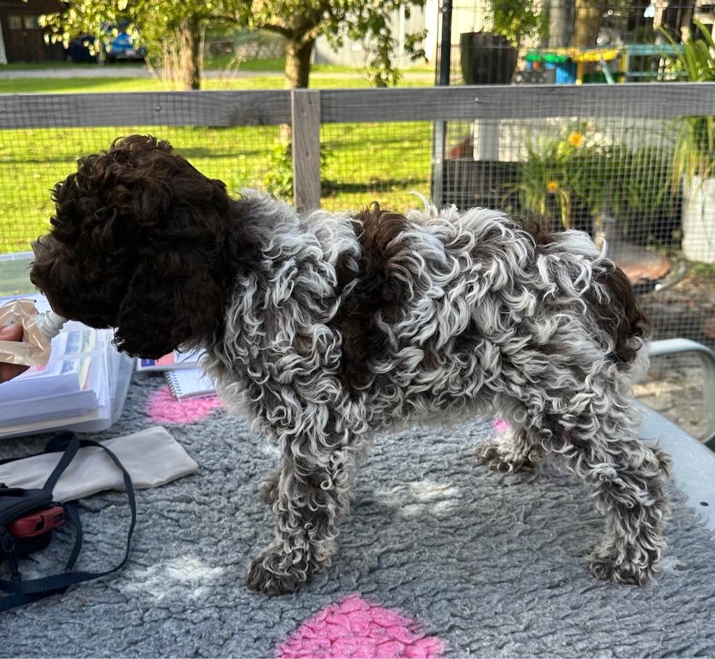 Farbe: Roano-Marrone, Fell-Typ: Gelockt, Fell-Muster: Normal