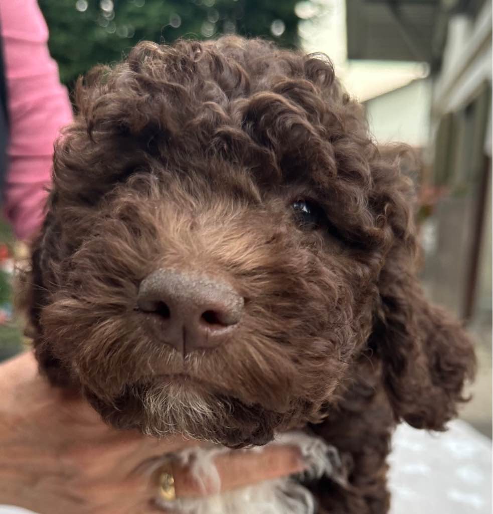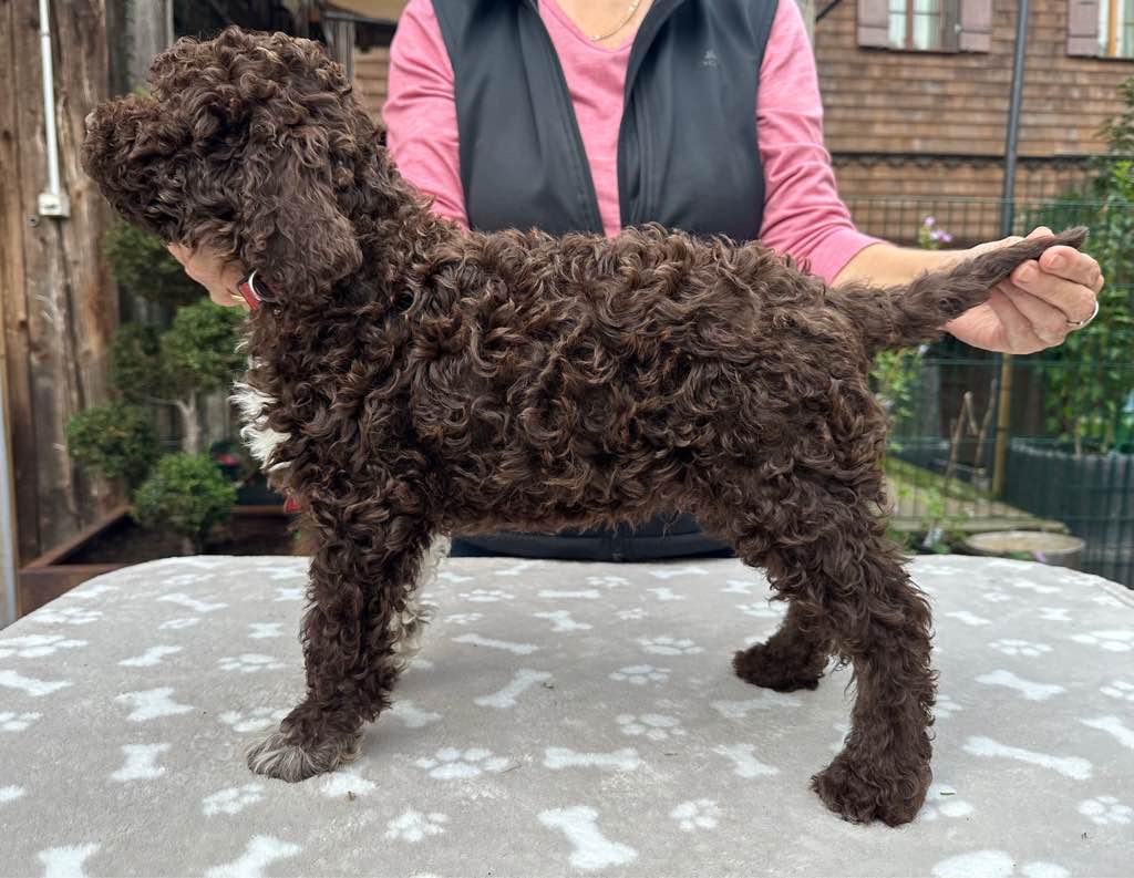 Farbe: Bianco-Marrone, Fell-Typ: Gelockt, Fell-Muster: Normal
