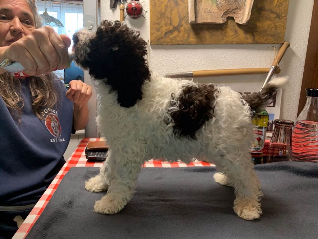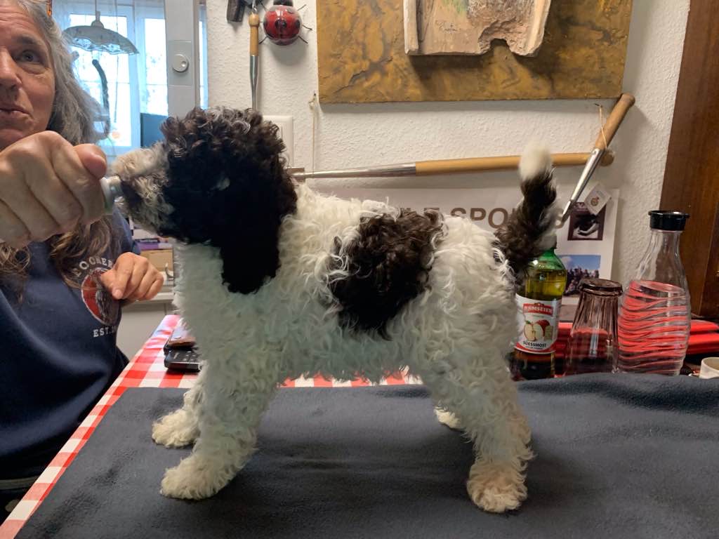 Farbe: Bianco-Marrone, Fell-Typ: Gelockt, Fell-Muster: Normal