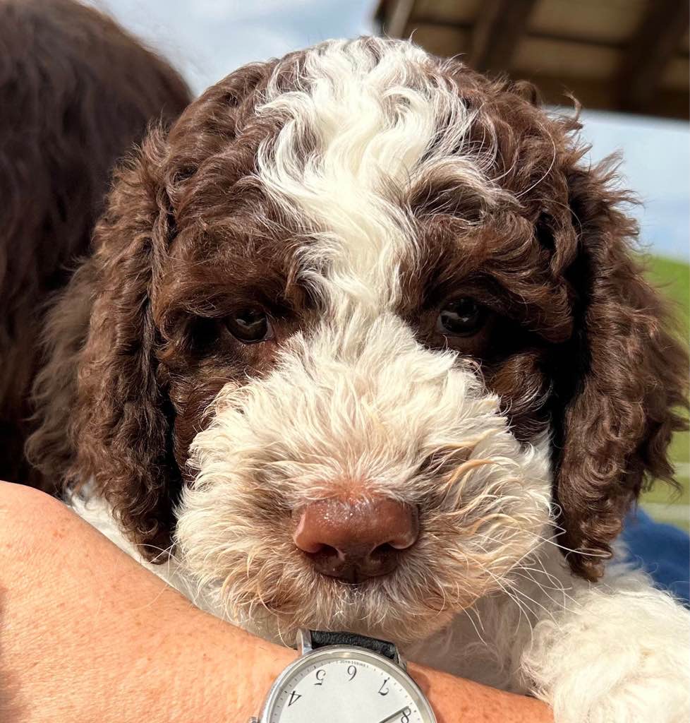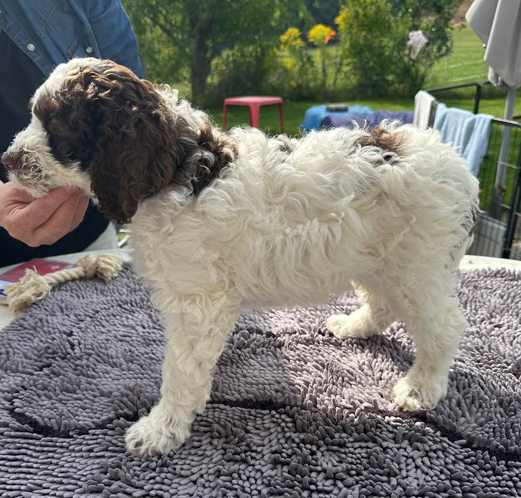 Farbe: Bianco-Marrone, Fell-Typ: Gelockt, Fell-Muster: Normal