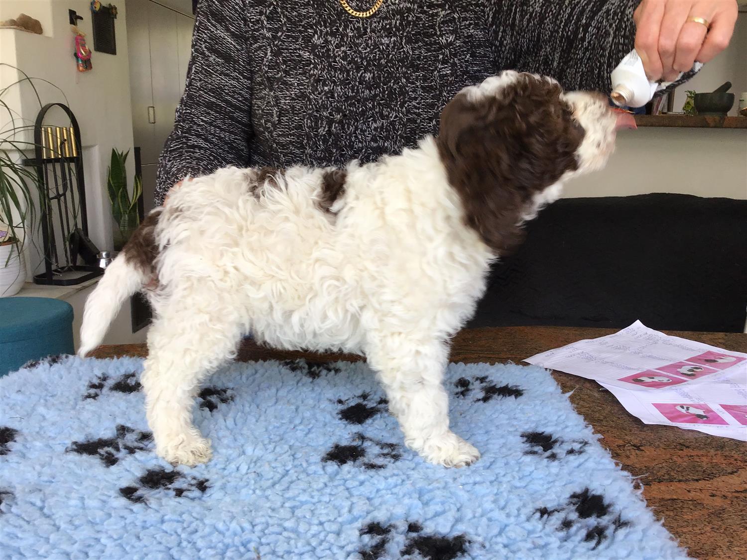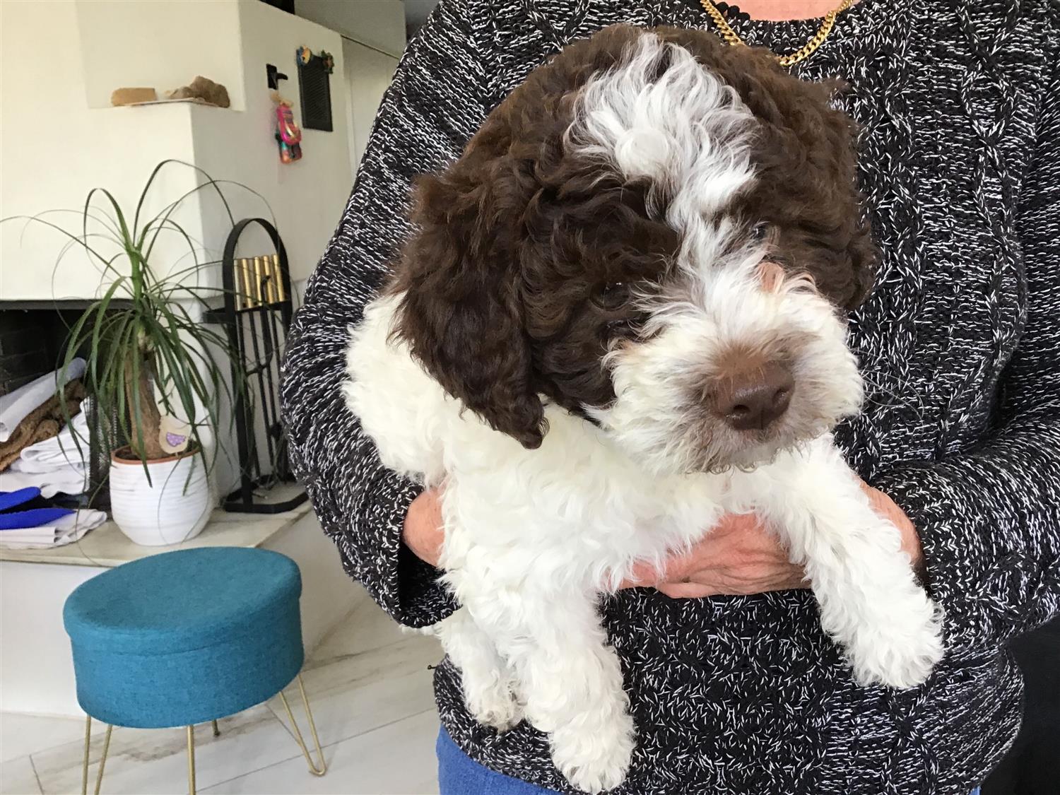 Farbe: Bianco-Marrone, Fell-Typ: Gelockt