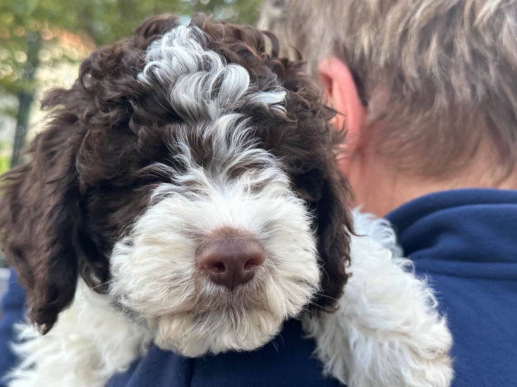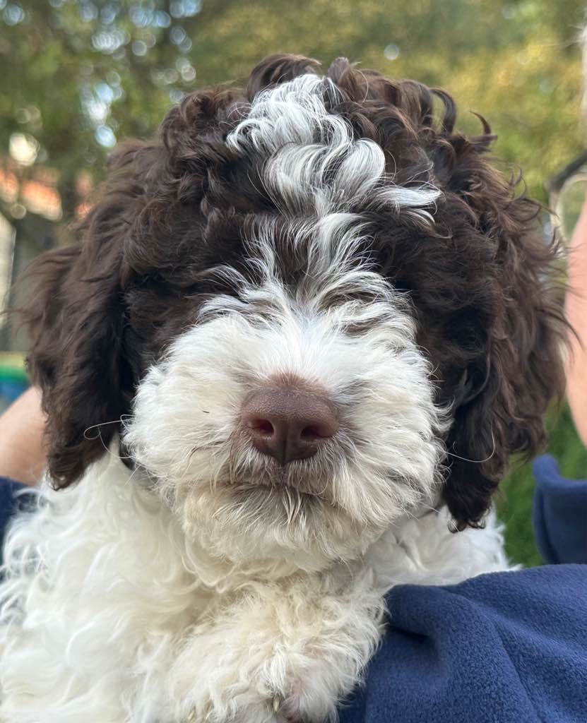 Farbe: Bianco-Marrone, Fell-Typ: Gelockt, Fell-Muster: Normal