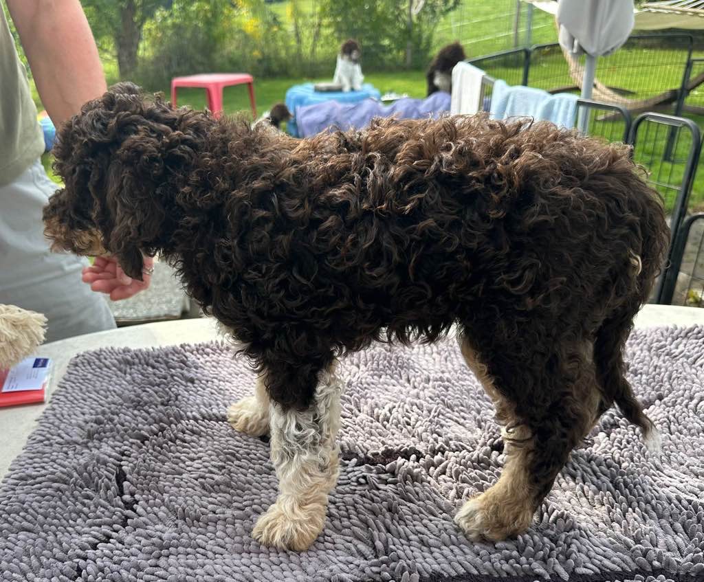 Farbe: Marrone, Fell-Typ: Gelockt, Fell-Muster: Focato