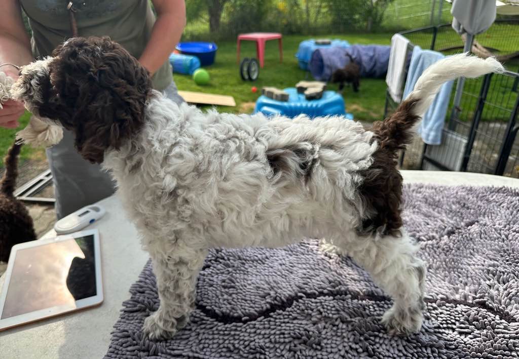 Farbe: Roano-Marrone, Fell-Typ: Gelockt, Fell-Muster: Normal