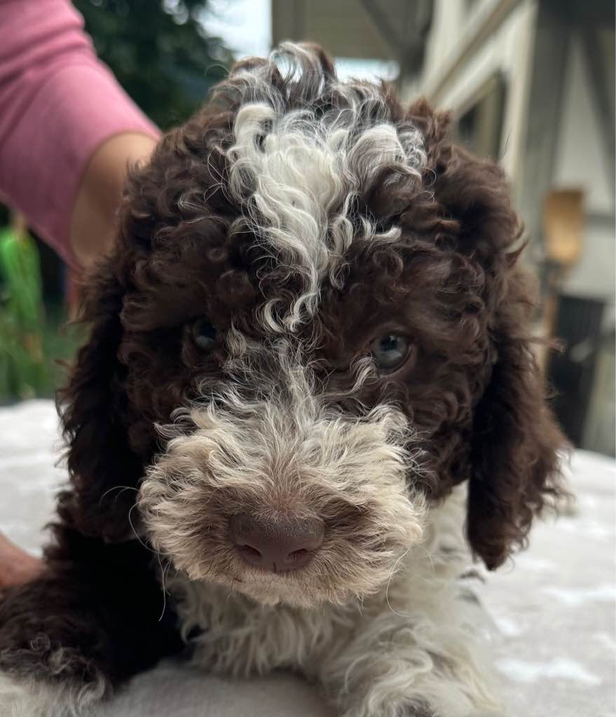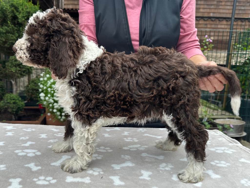 Farbe: Bianco-Marrone, Fell-Typ: Gelockt, Fell-Muster: Normal
